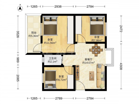 文德雅轩 | 3室2厅 | 75.55 平米 | 南 | 精装修 | 有电梯