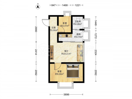 福地轩 | 1室1厅 | 49.5 平米 | 南 | 普通装修 | 有电梯