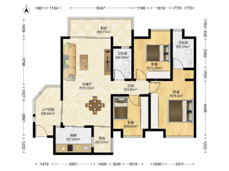 岭南新世界 | 3室2厅 | 114.42 平米 | 东北 | 精装修 | 有电梯
