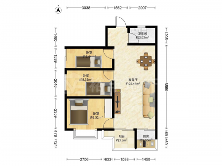 机安宿舍 | 3室2厅 | 60 平米 | 北 | 精装修 | 有电梯
