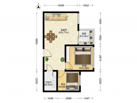 金迪城市花园 | 2室1厅 | 49.5 平米 | 东 | 普通装修 | 有电梯
