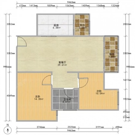亚运城天誉 | 2室1厅 | 99.05 平米 | 东 | 精装修 | 有电梯