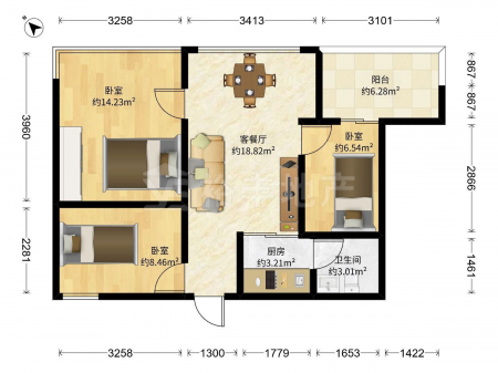 金桂园 | 3室2厅 | 91.67 平米 | 东 | 精装修 | 有电梯