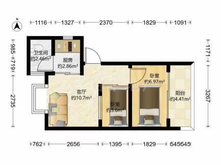 医国街 | 2室1厅 | 31.4 平米 | 西 | 精装修 | 无电梯