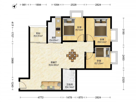 同德名苑 | 3室1厅 | 30.69 平米 | 南 | 普通装修 | 无电梯