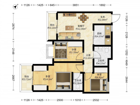 同德名苑 | 3室2厅 | 51.66 平米 | 东 | 普通装修 | 无电梯