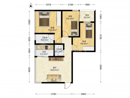 世纪广场 | 3室2厅 | 112.87 平米 | 南 | 精装修 | 有电梯