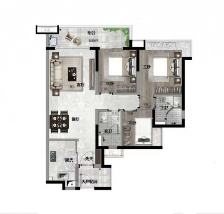 融创翔龙广府壹号 | 3室2厅 | 87 平米 | 东北 | 精装修 | 有电梯