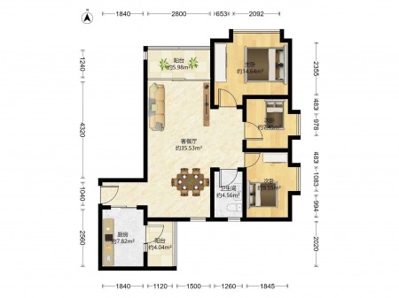 金港花园 | 3室2厅 | 102.01 平米 | 北 | 精装修 | 有电梯