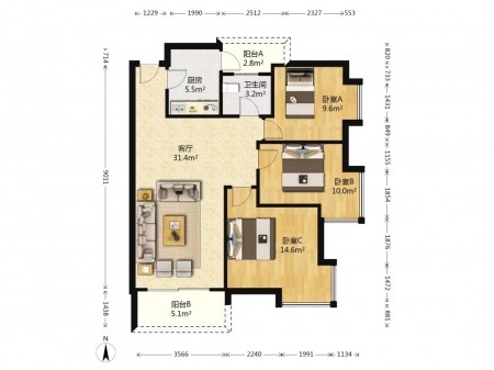 云锦居 | 3室1厅 | 142 平米 | 南 | 普通装修 | 无电梯