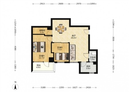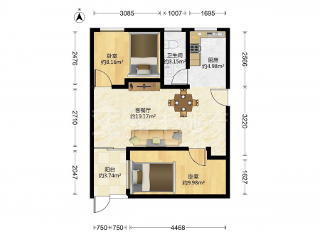 骏鸿花园 | 2室1厅 | 62.28 平米 | 南 | 普通装修 | 无电梯