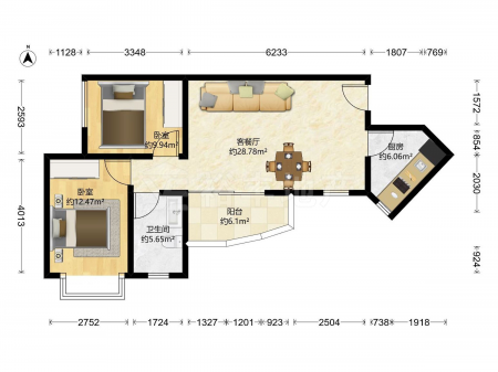 金碧世纪花园 | 2室2厅 | 69.26 平米 | 南 | 普通装修 | 有电梯