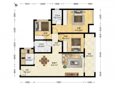 金宇花园 | 3室2厅 | 57.51 平米 | 南 | 豪华装修 | 无电梯