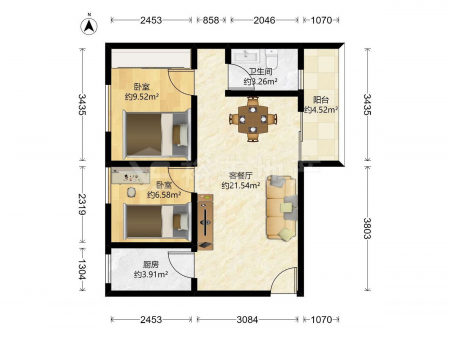 晓城大厦 | 2室2厅 | 56.95 平米 | 西南 | 精装修 | 有电梯