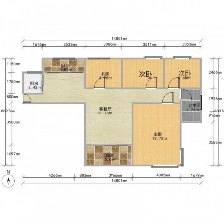 沙园二街南 | 2室1厅 | 57.43 平米 | 东南 | 普通装修 | 无电梯
