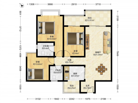 富泽园 | 2室1厅 | 63.91 平米 | 南 | 普通装修 | 有电梯