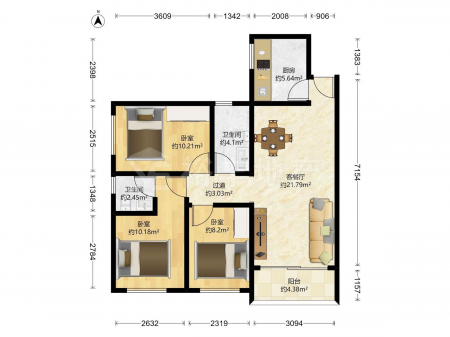 西华街 | 3室2厅 | 72 平米 | 西 | 精装修 | 无电梯