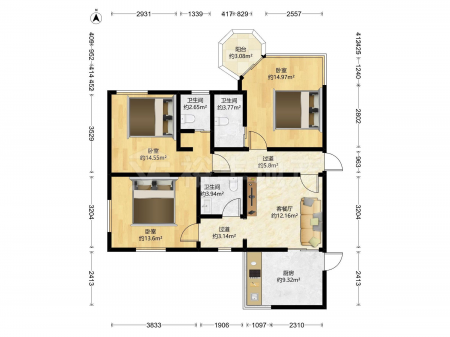 黄埔花园 | 2室2厅 | 89 平米 | 保留 | 精装修 | 有电梯
