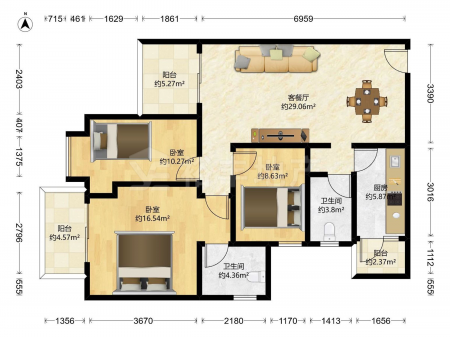 保利紫云 | 4室2厅 | 104 平米 | 西南 | 普通装修 | 有电梯